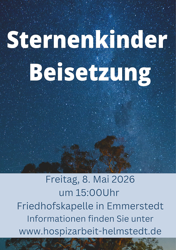 Zu einer Gedenkfeier für alle Eltern und Angehörigen, die um fehlgeborene und ungeboren verstorbene Kinder trauern, lädt die Stadt Helmstedt ein. Am Freitag, dem 8. Mai 2026 um 15:00 Uhr beginnt das gemeinsame Gedenken in der Kapelle auf dem Friedhof von Emmerstedt. Hier gibt es ein eigenes Grabfeld für Sternenkinder, die aufgrund eines Gewichts von unter 500 g nicht unter die Bestattungspflicht fallen.